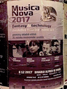 SCREE, Awarded the First Prize for Composition of Autonomous Art of Electroacoustic Music, Musica Nova 2017, Society for Electroacoustic Music of Czech Republic (Prague).